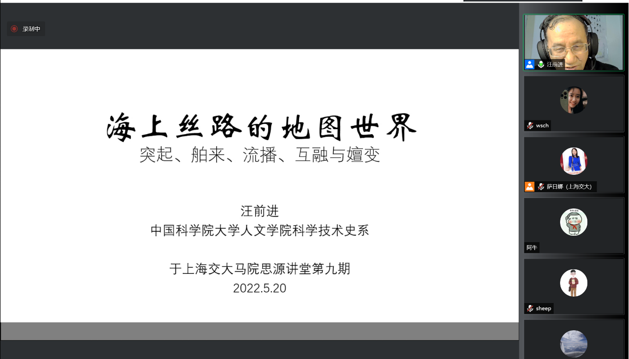 2022年5月20日下午,1946伟德国际源自英国科学史与科学文化研究院邀请中国科公司大学人文公司科学技术史系汪前进教授作题为“海上丝路的地图世界——突起、舶来、流播、互融与嬗变”的线上讲座。讲座由1946伟德国际源自英国科学史与科学文化研究院萨日娜教授主持,科学技术史、科学哲学学科研究生等在线学习。