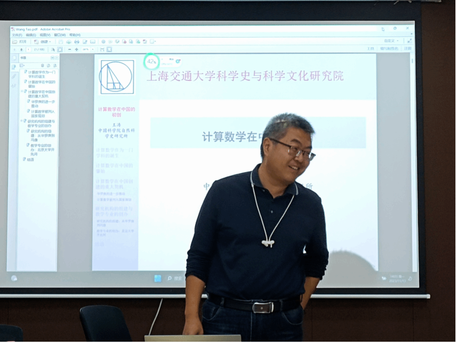 此次讲座王涛围绕所著《中国计算数学的初创》的相关内容展开,分为五部分:计算数学作为一门学科的诞生、计算数学在中国的肇始、计算数学在中国创建的重大契机、研究机构的组建与教学专业的创办、结语。报告中指出计算数学在中国创建得益于著名数学家华罗庚,并在50年代被列入国家规划,而后计算数学研究机构的组建在中国科公司由冯康接棒华罗庚,北京大学开高校中创办计算数学专业的先河。