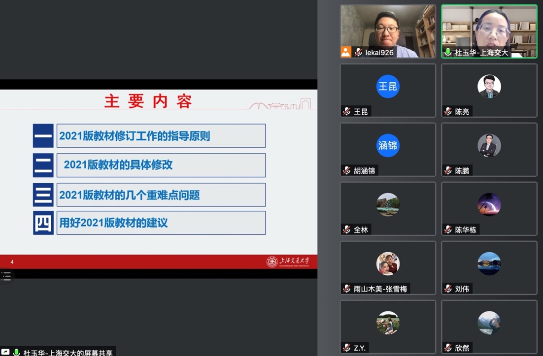 首先,参与2021年版教材修订的杜玉华教授作专题辅导,系统深入地为教研室教师们讲解2021年版教材修订工作的指导原则、修订之处、重点难点等问题,并提出了使用新教材的若干建议。