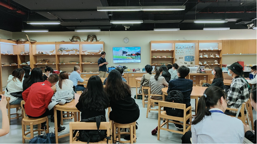 简短的欢迎仪式过后,上海自然博物馆副研究员何鑫博士以“上海自然博物馆溯源——上海近代自然博物故事”为题进行讲座。何鑫博士指出,虽然我国在生物多样性保护方面已经取得了巨大成就,但是仍未实质性缓解调和城市活动对生物栖居地的消极影响。要实现真正意义的人与自然的和谐共生,还需要探寻一种更为有效的机制,还需要更多的青年人投身到观察自然、亲近自然、研究自然的事业中来。