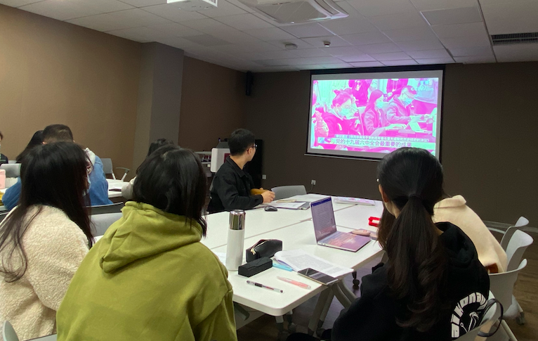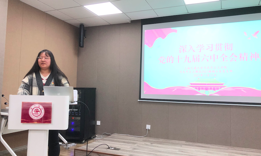 11月12日上午,马克思主义理论2021级硕士生党支部在老法学楼B401室开展学习党的十九届六中全会精神主题党日活动,活动由支部书记赵凌杰主持。