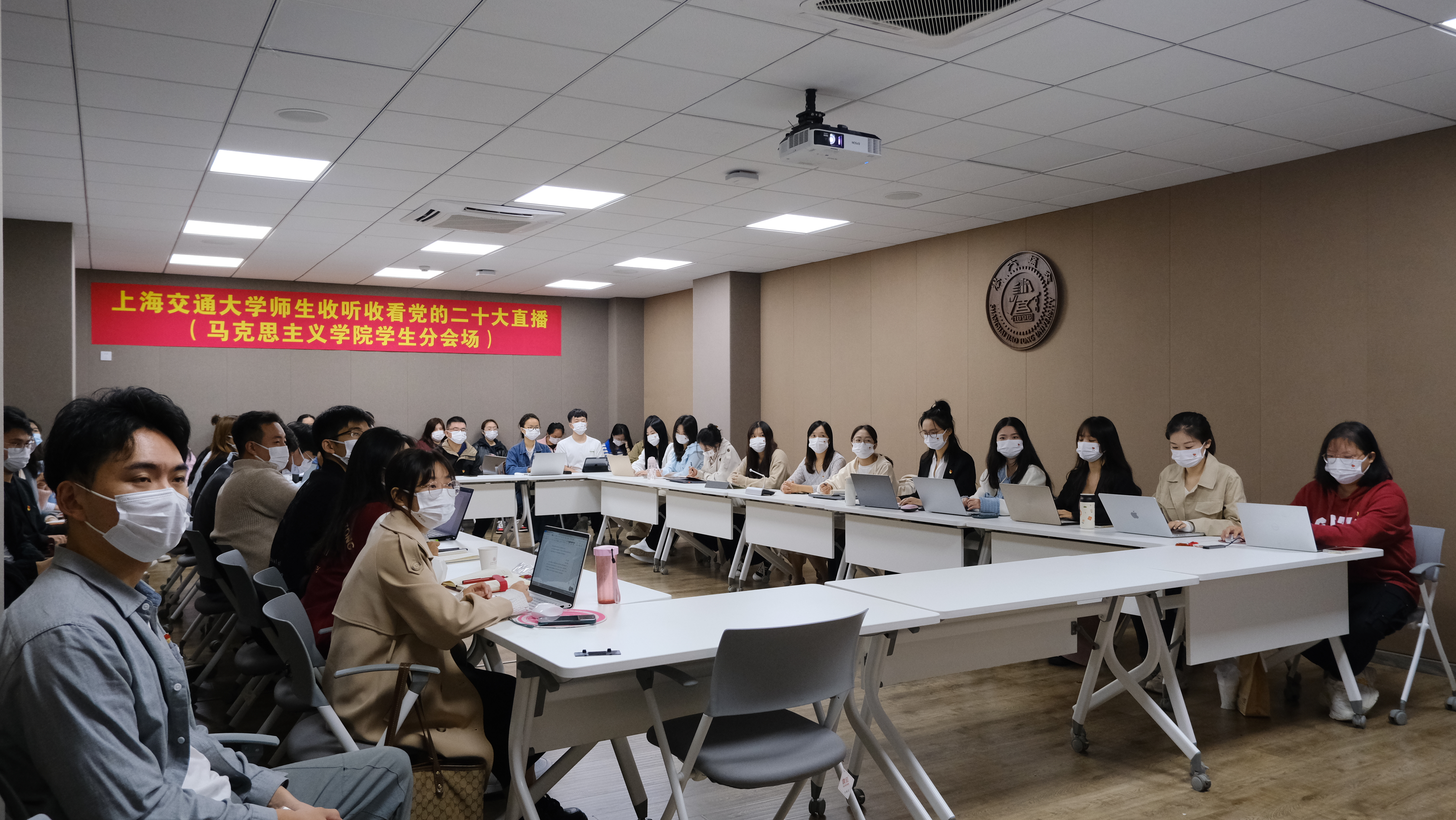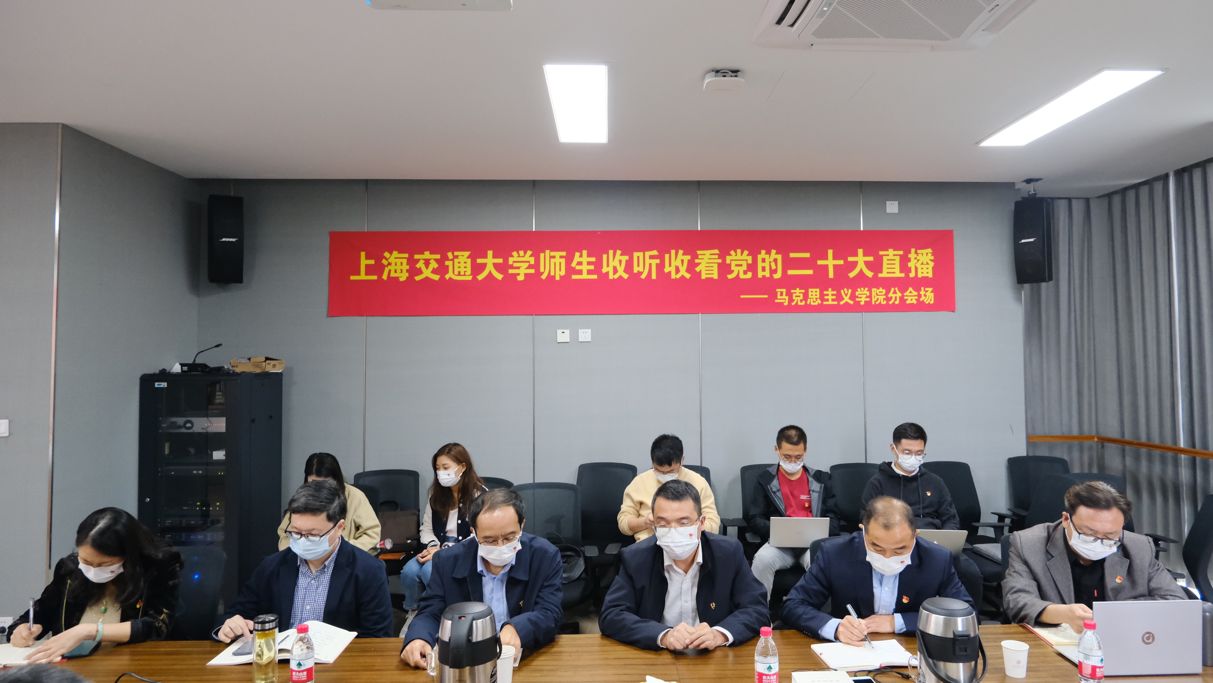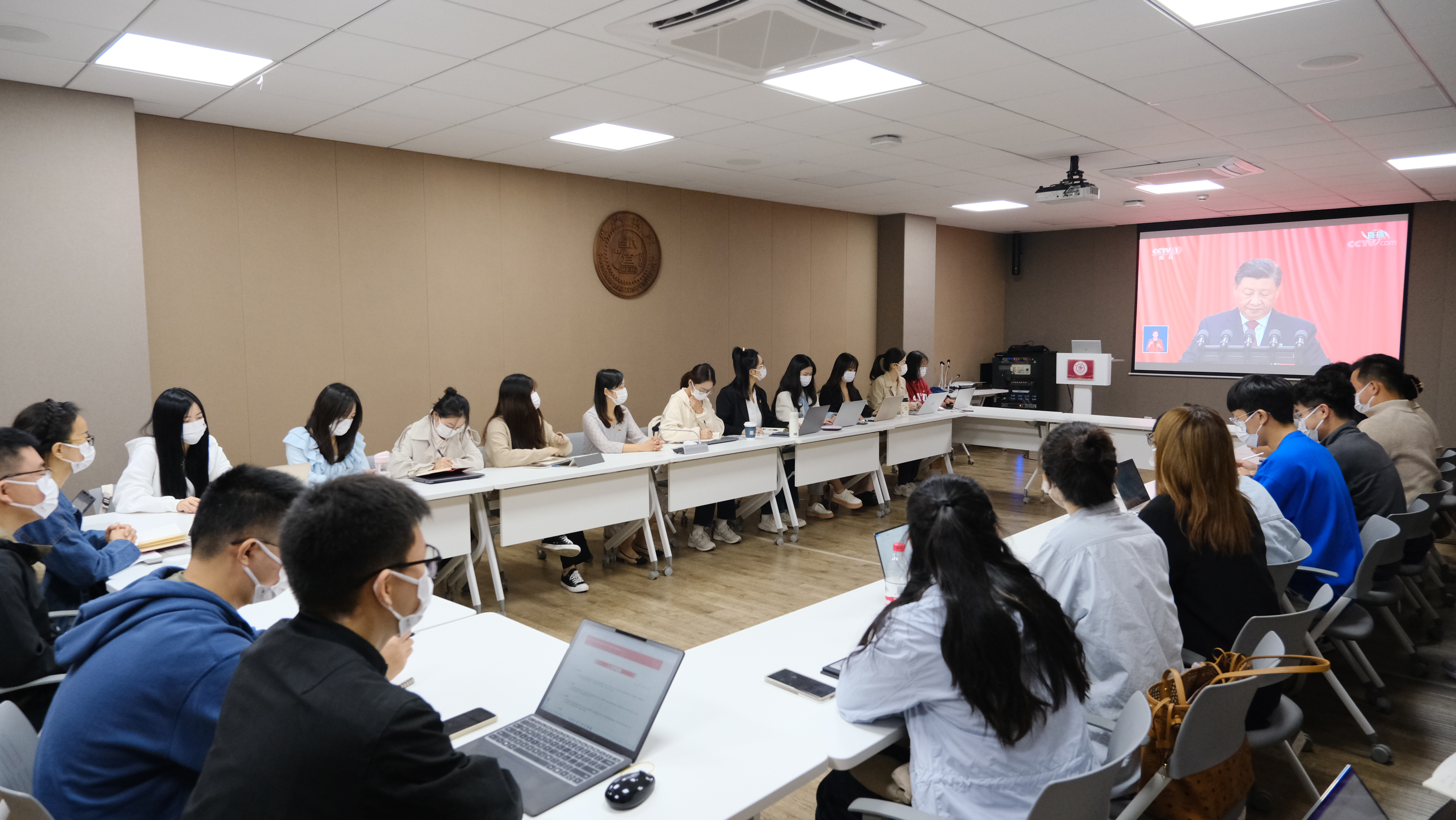 公司党委书记董玉山表示,党的二十大是我国进入全面建设社会主义现代化国家新征程关键时刻召开的一次十分重要的大会,具有划时代意义。学习研究宣传党的创新理论,是1946伟德国际源自英国的神圣使命、第一任务。今天组织全院师生收听收看党的二十大开幕直播,实时聆听习近平总书记报告,心潮澎湃,激奋万分。全院师生一定紧跟会议进展,细心领悟会议精神,把党的最新理论成果有机融入各门思政课堂,用二十大精神引领教学、指导科研、武装头脑。