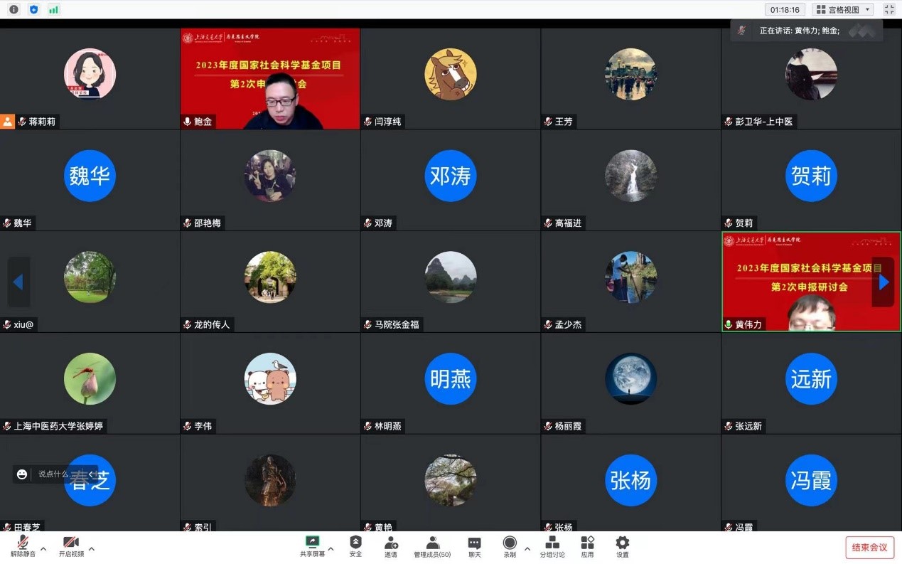为做好国社科基金项目申报服务工作,助推教师提升项目申报质量,交大马院于2023年1月9日上午举行2023年度国家社会科学基金项目第二次申报研讨会。国社科重大项目首席专家、交大马院教授黄伟力、高福进出席会议并担任点评专家。交大马院和上海中医药大学马院50余名教师参加会议。研讨会由副经理鲍金主持。