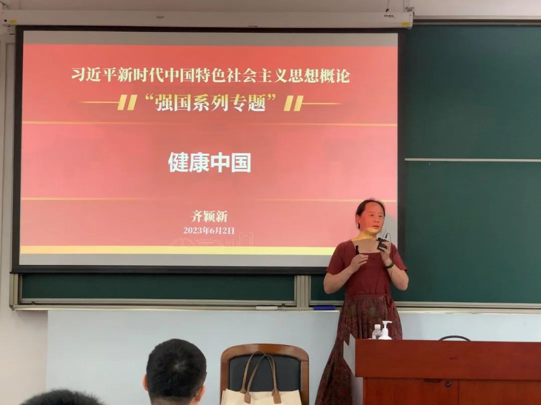 与此同时,生命科学技术公司齐颖新教授也以“健康中国”为主题主线,围绕习近平总书记关于“健康中国”的重要论述,结合自身科研经历和交大在医疗领域中的贡献讲授推进“健康中国”的战略意义和实现路径,让同学们系统了解党中央始终将保障人民健康放在优先发展的战略地位,深刻领悟人民健康是民族昌盛和国家强盛的重要标志。