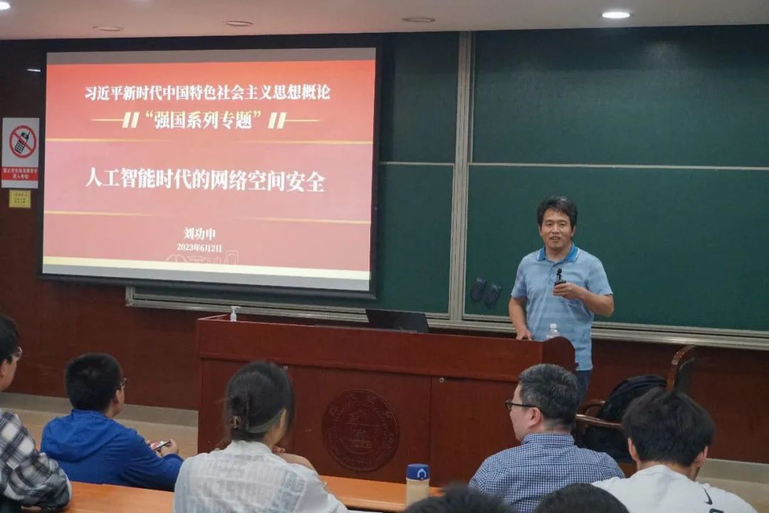 刘功申教授来自网络空间安全公司。面对台下来自电子科学与技术、微电子科学与工程以及信息工程等各个专业的同学们,刘功申以“建设网络强国:人工智能时代的网络空间安全”为题,从国家安全和网络安全、网络强国人才需求、人工智能安全等角度剖析当前网络强国建设的战略思路,又深入浅出地介绍了人工智能3.0的概念,引得台下同学阵阵掌声。