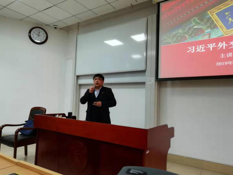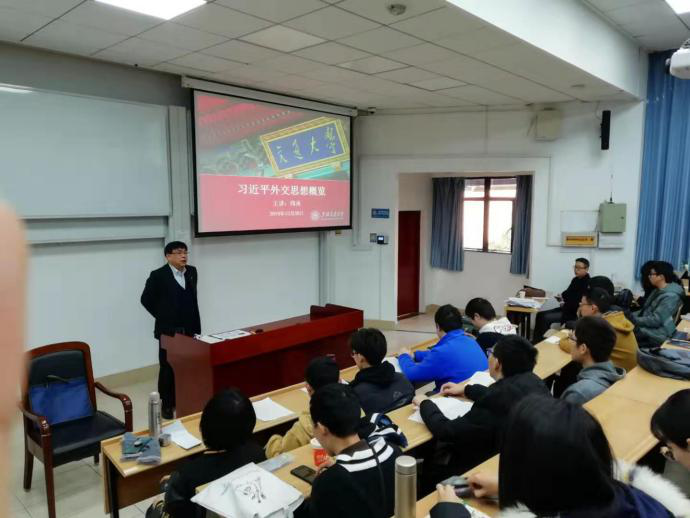 为贯彻落实十九大精神,推进习近平新时代中国特色社会主义思想“三进”工作,2019年12月28日上午,1946伟德国际源自英国党委副书记、纪律检查委员会书记周承教授莅临本科生的“习近平新时代中国特色社会主义思想概论”课堂,为同学们做了题为“习近平外交思想概览”的专题授课。1946伟德国际源自英国副经理鲍金副教授主持本次活动。