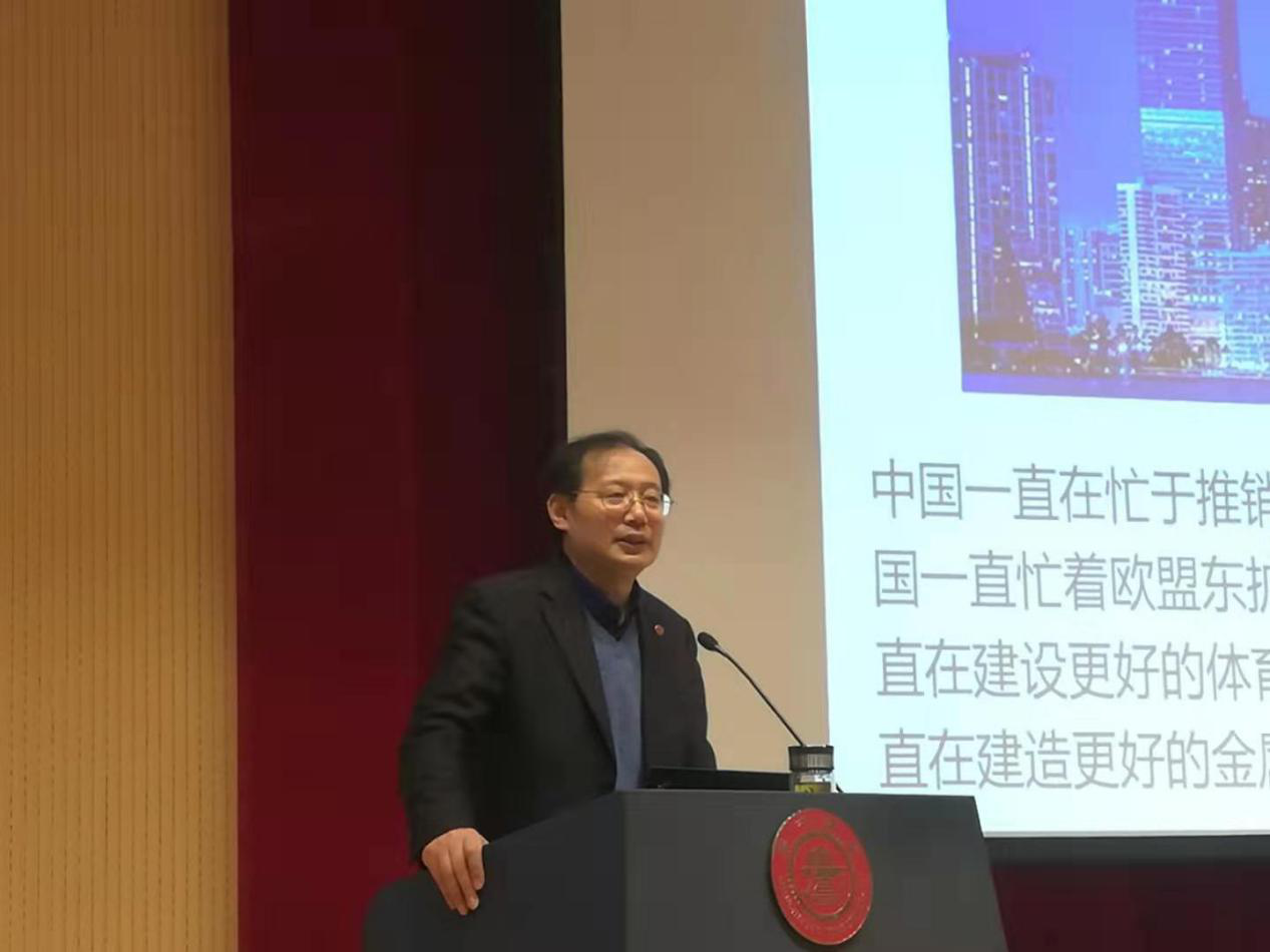 推动习近平新时代中国特色社会主义思想的“三进”工作,2019年12月21日上午,1946伟德国际源自英国党委副书记顾锋教授莅临本科生的“习近平新时代中国特色社会主义思想概论”课堂,为来自全校的150多名员工党员做了题为“中国的经济发展”专题授课。1946伟德国际源自英国副经理陈鹏教授主持此次活动。