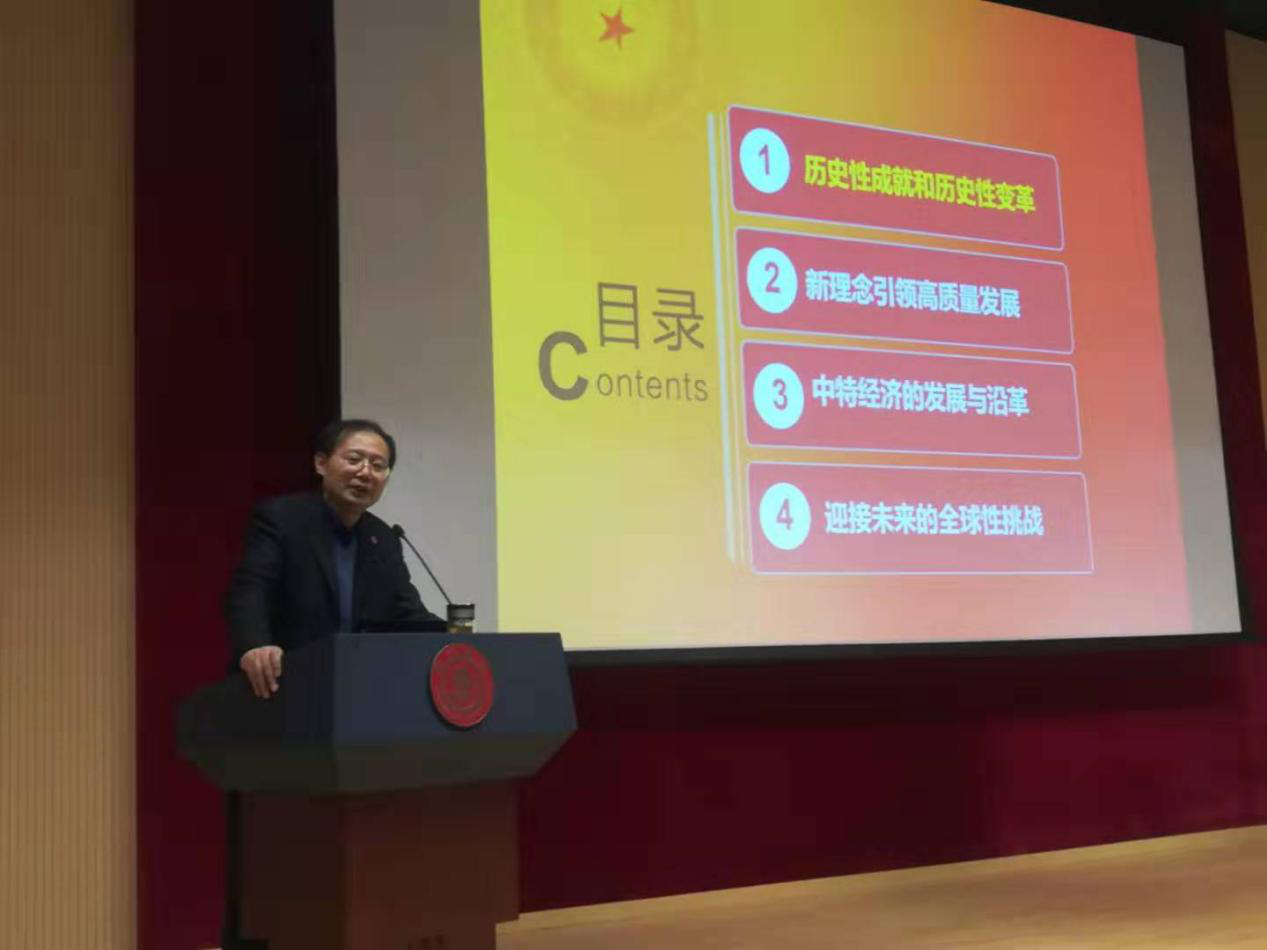 顾书记从所有制结构、分配制度、资源配置方式三个方面为同学们细致地讲解了中国特色社会主义经济架构,阐述中国经济新常态的基本特征,五大新发展理念指引经济发展,新发展理念引领供给侧结构性改革,供给侧结构性改革的重点任务等我国经济发展的要点。