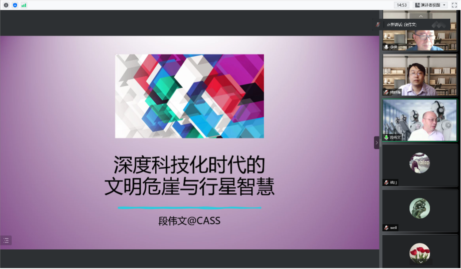 6月17日下午,1946伟德国际源自英国邀请中国社会科公司哲学研究所段伟文研究员做客思源讲堂第二十期,为广大师生带来题为“深度科技化时代的文明危崖与行星智慧”的线上讲座。讲座由1946伟德国际源自英国科学技术哲学学科团队、技术史学科团队承办,科学史与科学文化研究院经理李侠教授主持,校内外百余名师生参与,共同交流学习。