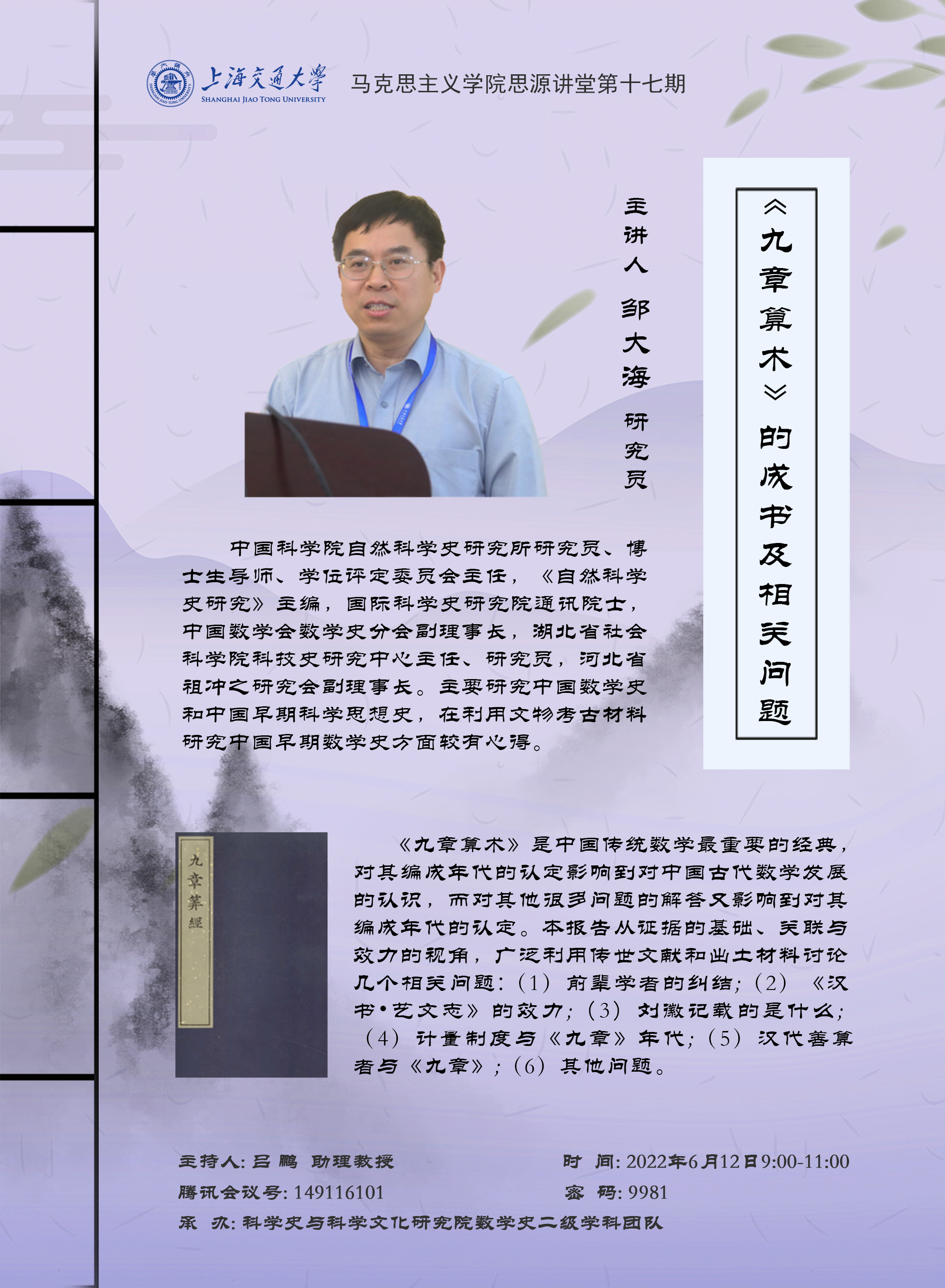 思源讲堂第十七期 | 《九章算术》的成书及相关问题