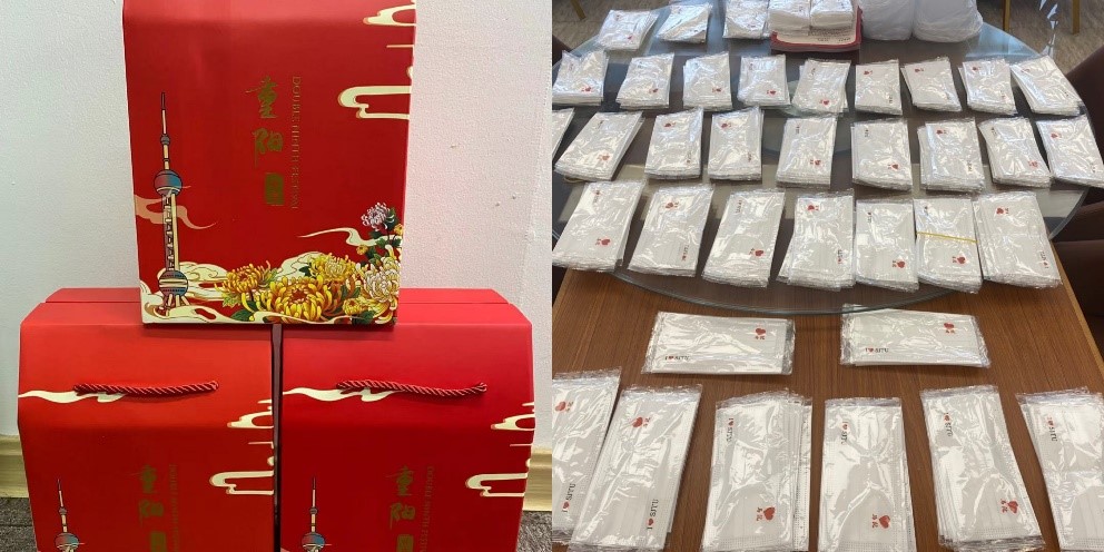 活动开始前,公司为每位老同志购置并寄送了节日慰问品,表达对老同志的关心和尊敬。在活动现场,为大家准备了印有马院标识的防疫物资。