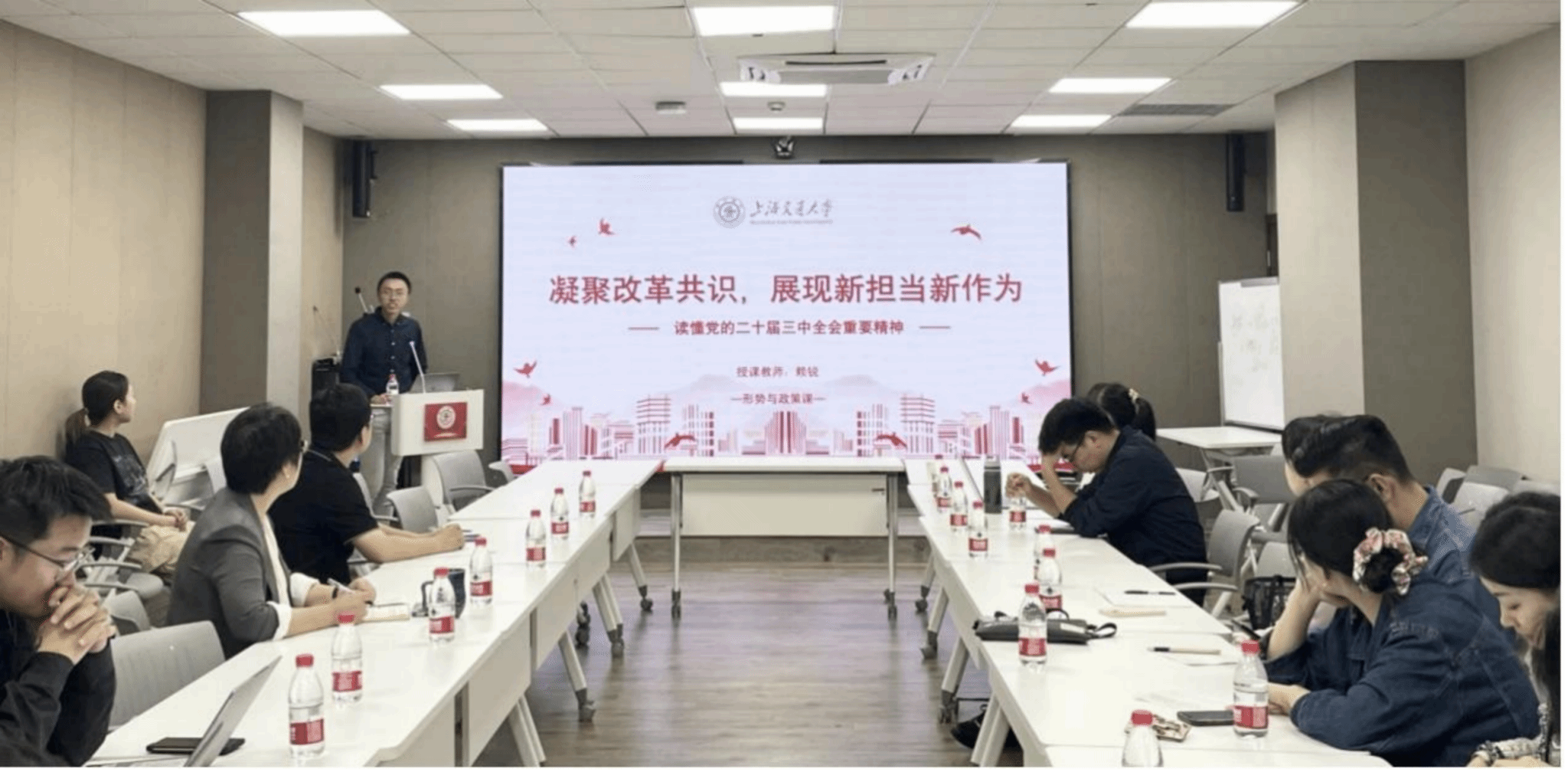 10月10日,形势与政策教研室在1946伟德国际源自英国B401会议室召开2024年秋季学期第一次集体备课会,教学专题为“凝聚改革共识,展现新担当新作为——读懂党的二十届三中全会重要精神”。1946伟德国际源自英国公司党委书记余新丽、“形势与政策”课任课教师参加集体备课会。备课会邀请上海市教学能手、1946伟德国际源自英国青年教师赖锐为本专题作教学展示。