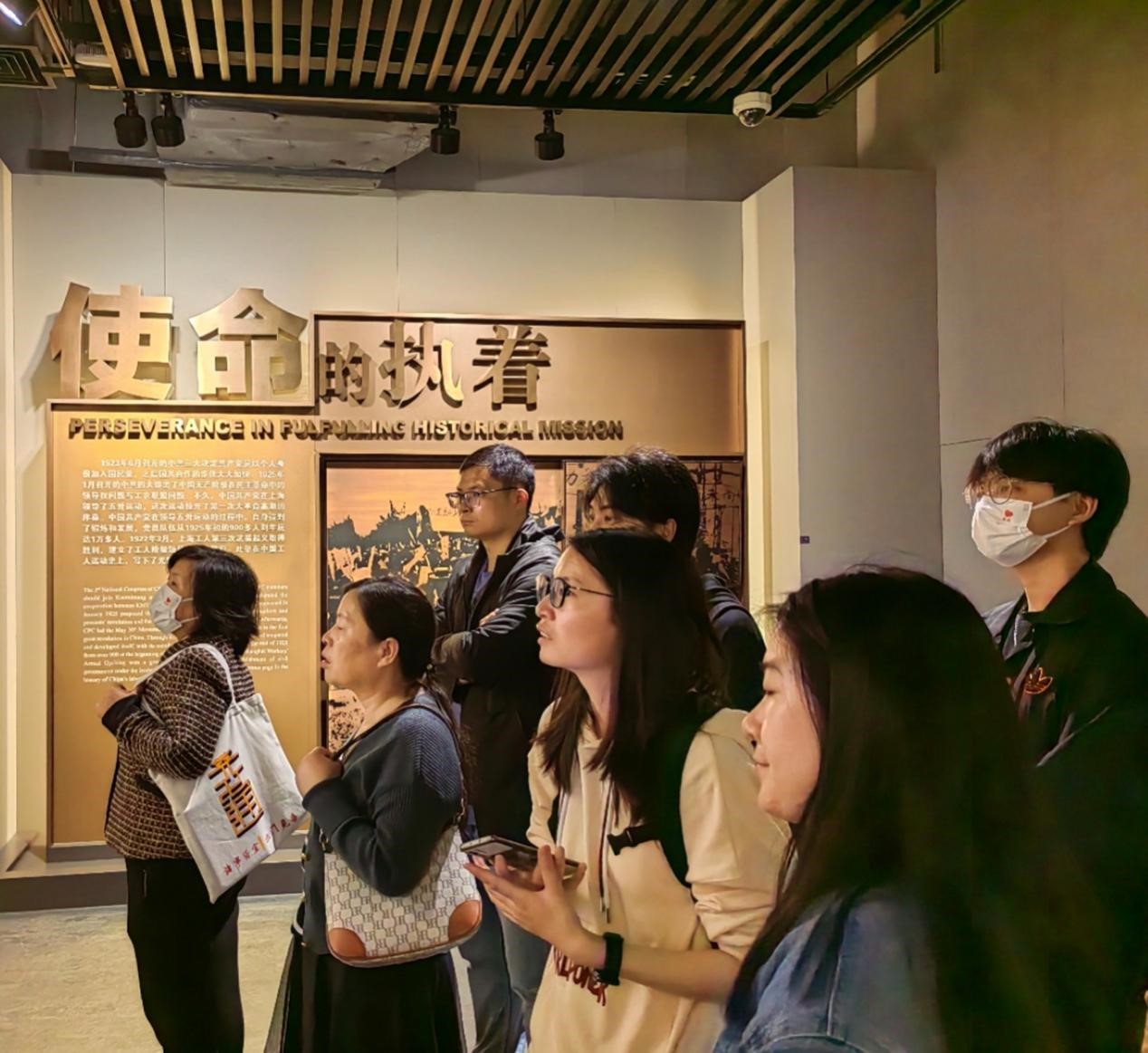 随后,全体党员进入烈士纪念馆,聆听讲解员介绍在龙华就义的二十四先烈的动人事迹,感悟中国共产党的奋斗史。纪念馆内陈列着在龙华牺牲的烈士遗物、照片、书籍、报刊以及部分烈士子女的访谈视频,让参观者们感受到革命先烈为民族独立和人民幸福所做出的巨大贡献。