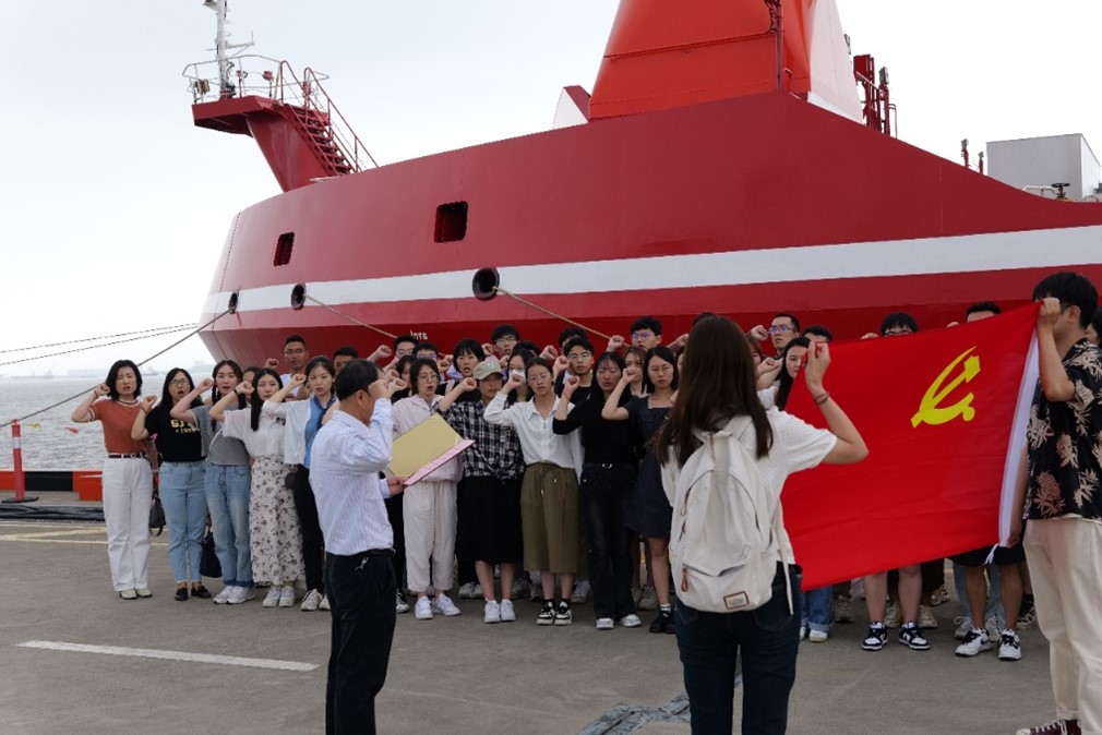 活动最后,在公司党委副书记杜夏明的带领下,全体师生党员在“雪龙2”号前重温入党誓词,为活动画上了圆满的句号。