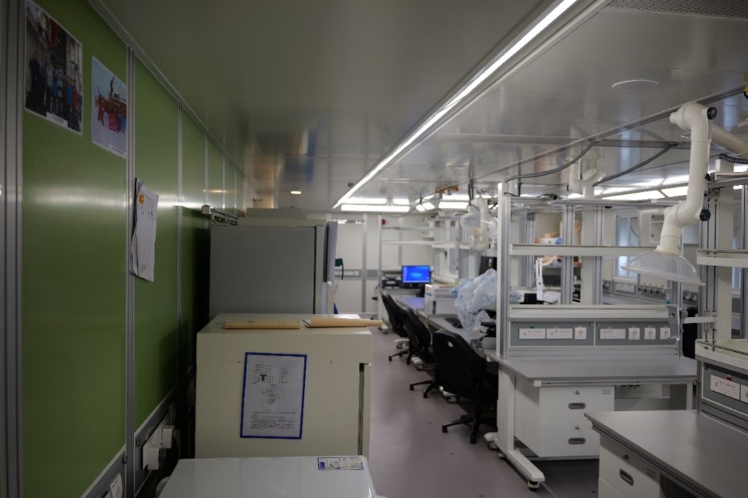 在大副陈冬林的带领下,师生们登上甲板,参观“雪龙2”号极地考察船。“雪龙2”号极地考察船于2019年7月交付使用,是中国第一艘自主建造的极地科学考察破冰船,同时也是世界上第一艘采用船艏、船艉双向破冰技术的极地科考破冰船。这艘万吨级破冰巨轮的出现,标志着我国完全掌握了PC3级破冰船的建造技术,填补了中国在极地科考重大装备领域的空白。