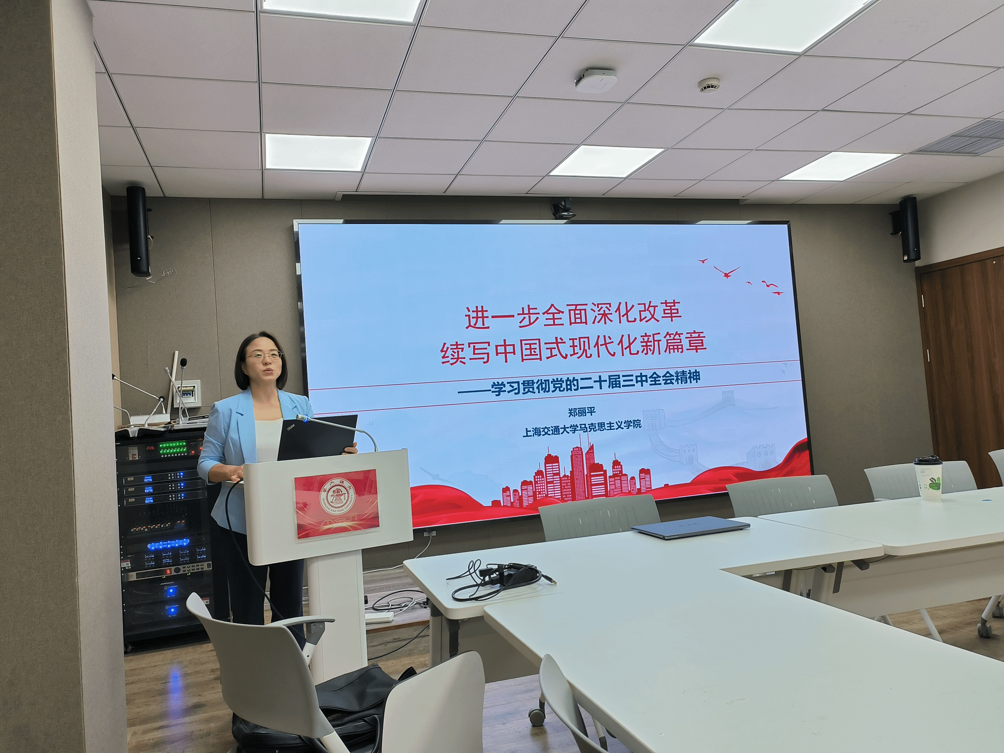 郑丽平作题为《进一步全面深化改革、续写中国式现代化新篇章——学习贯彻党的二十届三中全会精神》的专题报告。报告紧紧围绕二十届三中全会的会议精神,从“二十届三中全会的主题和 《中共中央关于进一步全面深化改革、推进中国式现代化的决定》的结构框架”“深刻把握二十届三中全会精神的六个重要问题”“学习贯彻二十届三中全会精神的建议”等三个方面展开。