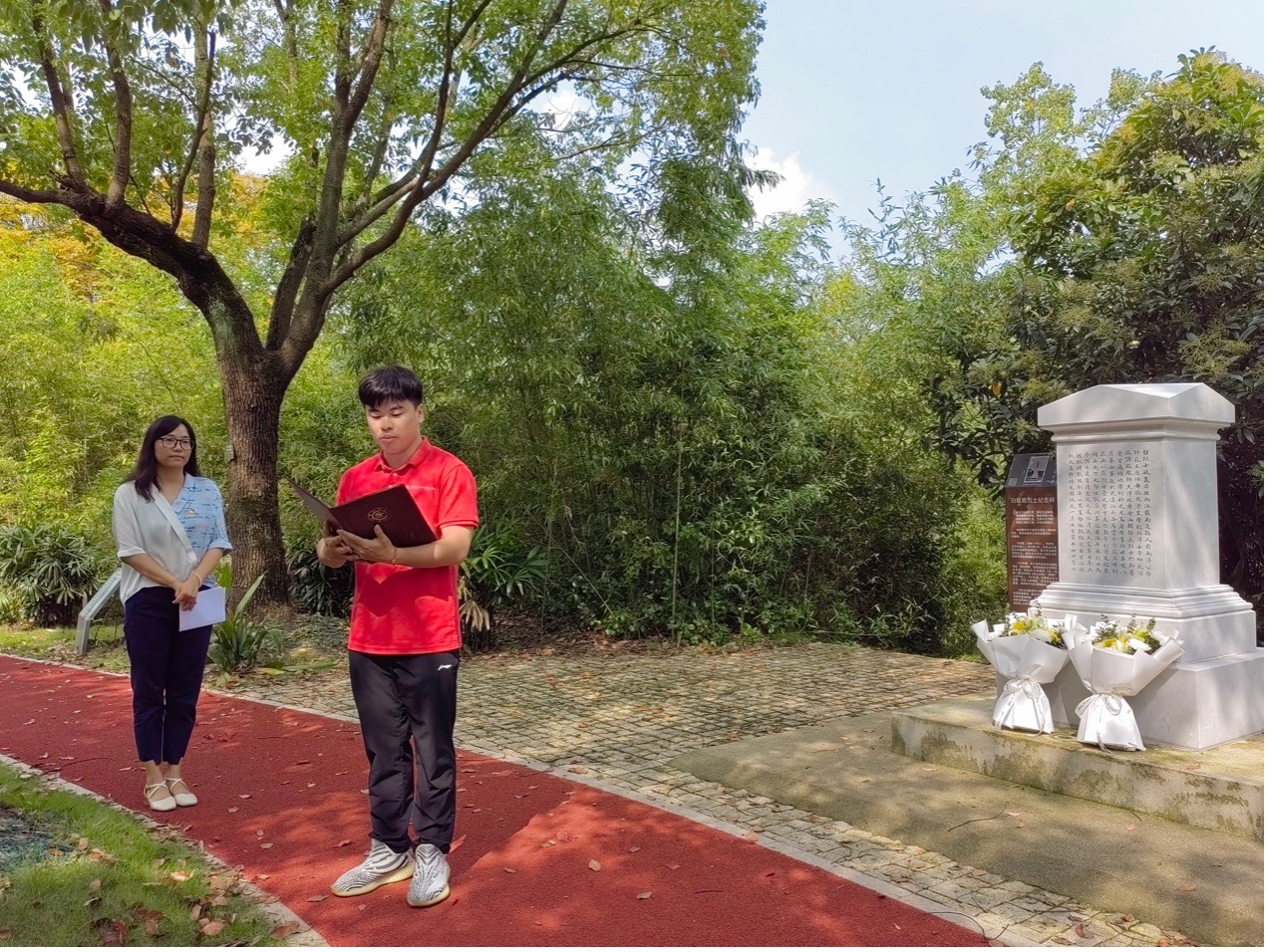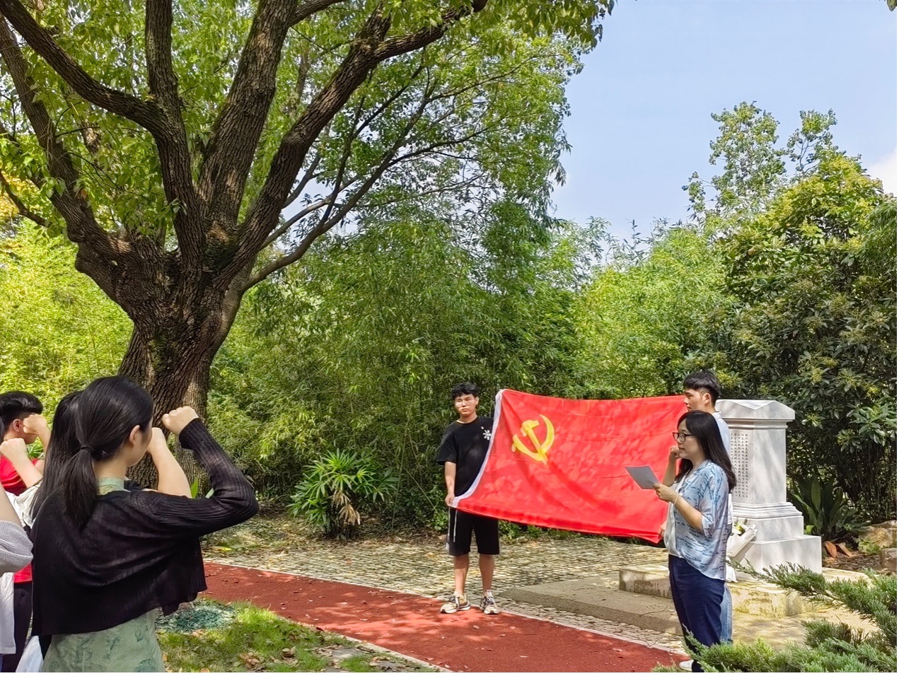 “一寸山河一寸血,一抔热土一抔魂。”在第十个烈士纪念日到来之际,为深切缅怀英雄烈士不朽功勋,弘扬爱国主义精神,树立崇尚英雄、学习英雄、争当英雄的鲜明导向,传承红色精神,赓续红色血脉,9月30日,1946伟德国际源自英国五个员工党支部党员和积极分子代表共同前往校内淡水河畔白毓崑烈士纪念碑祭扫,开展“铭记英烈遗志,传承英烈风骨”联合主题党日活动。
